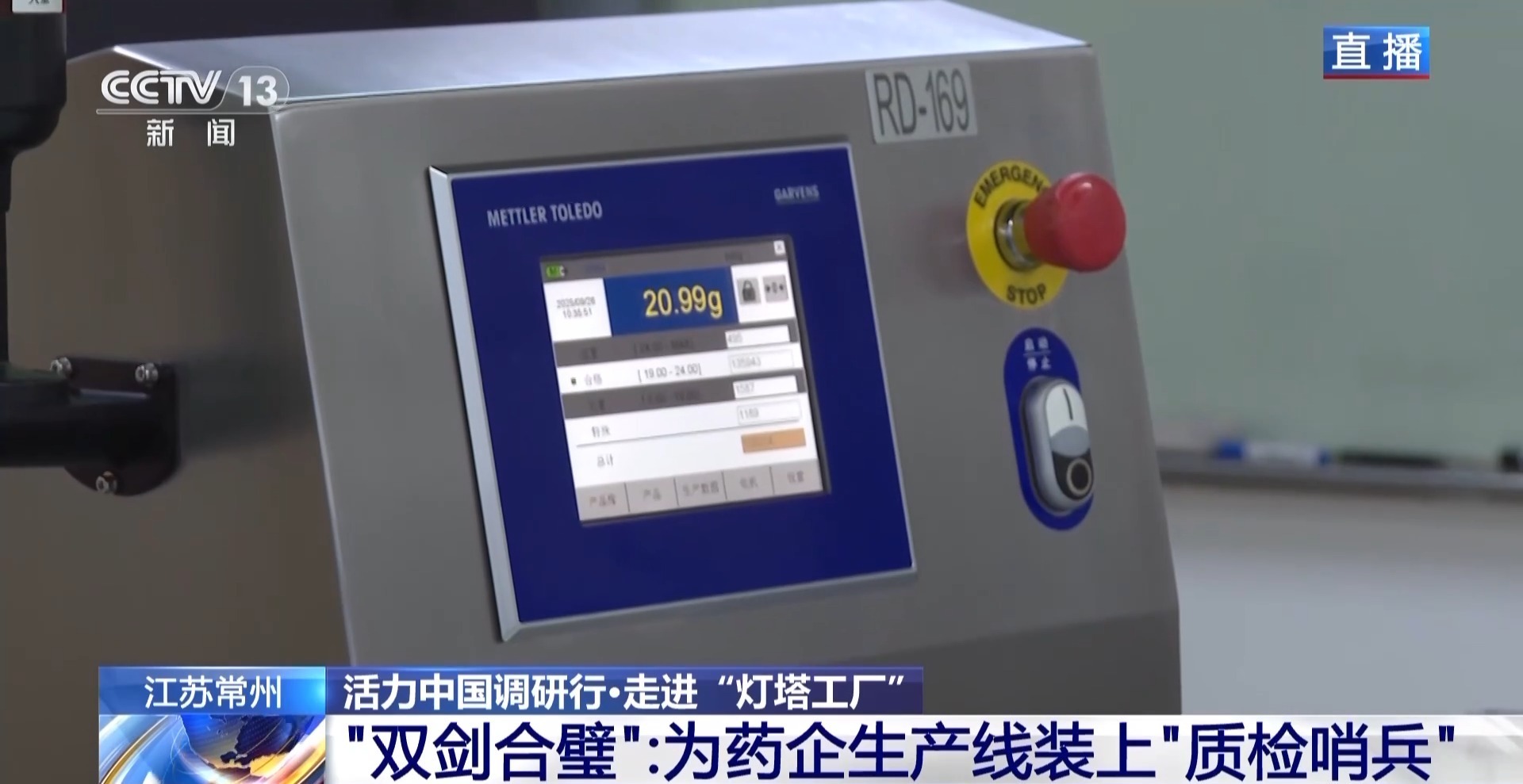 在常州,除了新能源工业蓬勃发展,生物医药工业也非常兴旺,在制药厂的出产线盒药品下线。