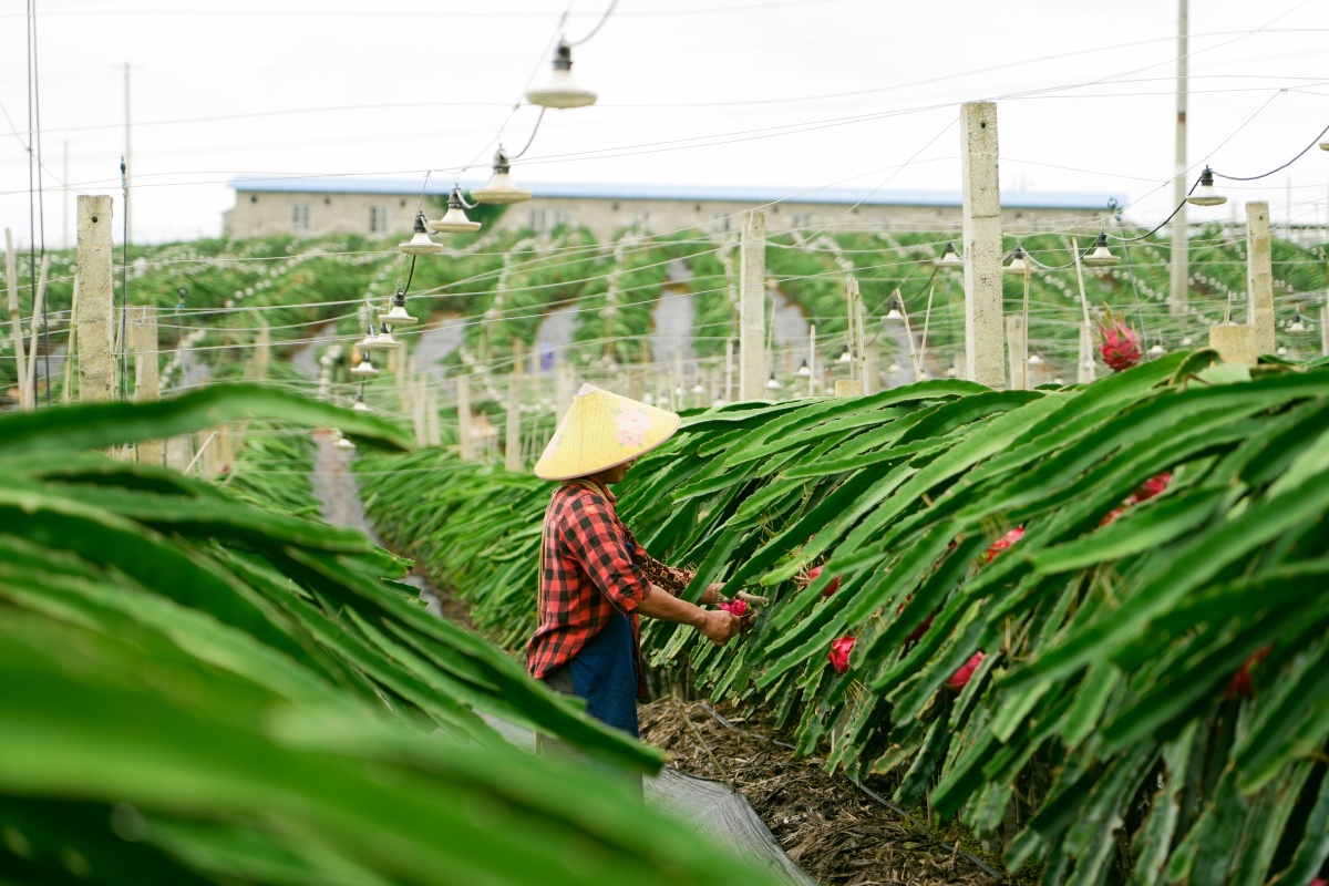 “这些白色灯是补光催花的秘诀,果农可以对春季的头花和秋季的尾花进行补光。”广西金穗农业集团技术负责人何业昕指着果园里的灯串介绍,通过补光调节花期,能使火龙果产季从5月延长至次年2月,实现错峰上市。