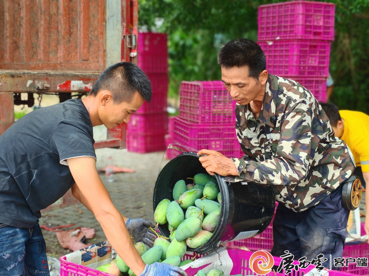 百色市右江区西北乐村,芒果收购商向果农采购刚采摘的芒果。记者 田希霞 摄